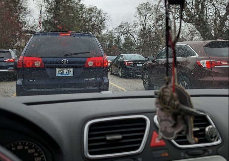 All students are dismissed at the same time (2:20 p.m.) in three patterns by walking, riding a school bus or being picked up as a car rider. During dismissal hours, the flow of traffic is one way into the school parking lot for entry and exit. All school buses are lined up in the parking lot where students load their assigned buses that exit in succession starting in rows from furthest lane to the nearest lane. After school buses have successfully left the parking lot, cars are ushered in by school staff who direct drivers to line up into designated lanes. Once all lanes have been filled completely with parked cars, students are allowed to safely approach and enter their car where the car is then dismissed in succession by lane starting exit line from right to left. If a student is not paying attention or delayed getting into their car, then the driver must exit with the flow of the cars in their lane, before circling the neighborhood to reenter car rider line. This “business rule” avoids creating bottlenecks or delays in the FLOW of traffic. Within minutes, approximately fifty cars FLOW through the parking lot at dismissal to pick up middle school students