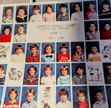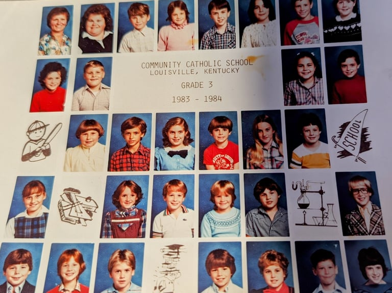 I am unable to locate a volleyball team picture from my childhood. Cameras, film and developing pictures were expensive luxuries in the 1980's that my parents could not afford. This is our "official" class picture of my third grade class. My volleyball teammate, Bridget Goodman (now Yates) would eventually serve as the head coach for over twenty years at Spalding University.